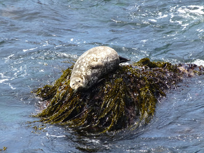 At times, it looked like the pup was lying on top of her. Pretty awesome sight! There were also harbor seals sunning themselves on the rocks. I like taking photos of animals. Here are a couple of a seal and a scrub jay, who got real close to me like it WANTED to be photographed!